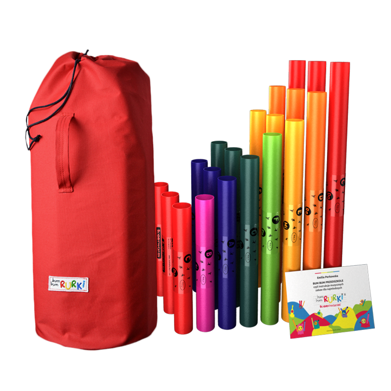 Do zestawu dołączono książeczkę Bum Bum Przedszkole. Jest to zbiór popularnych zabaw dziecięcych, które zostały metodycznie przystosowane do pełnego wykorzystania potencjału rurek Boomwhackers w trakcie zajęć.