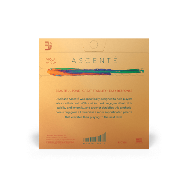 Struny Ascenté są dostosowane do altówek w rozmiarze Long Scale (długość korpusu 16-16 1/2 cala) z długością roboczą 15 cali (380 mm). Zostały stworzone z myślą o muzykach, którzy chcą wznieść swoją grę na wyższy poziom dzięki bardziej wyrafinowanej palecie dźwięków.