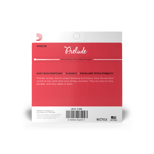 D'Addario Prelude to najbardziej popularne struny ze stalowym rdzeniem w rozmiarze 1/4. Ten komplet o długości grającej 10.5" (265mm) jest szczególnie polecany przez nauczycieli dla młodych uczniów. Łączy ciepłe brzmienie, wytrzymałość i dobrą cenę, co czyni go idealnym wyborem do regularnej nauki.