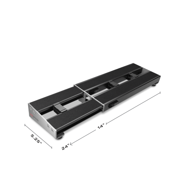 - Kompaktowy i rozsuwany: Dzięki teleskopowej konstrukcji, pedalboard XPND 1 oferuje zakres regulacji długości od 14 cali (ok. 35.5 cm) do 24 cali (ok. 61 cm). Jest wystarczająco mały, by być poręcznym, a jednocześnie na tyle elastyczny, by zmieścić rosnącą kolekcję efektów w jednym rzędzie.