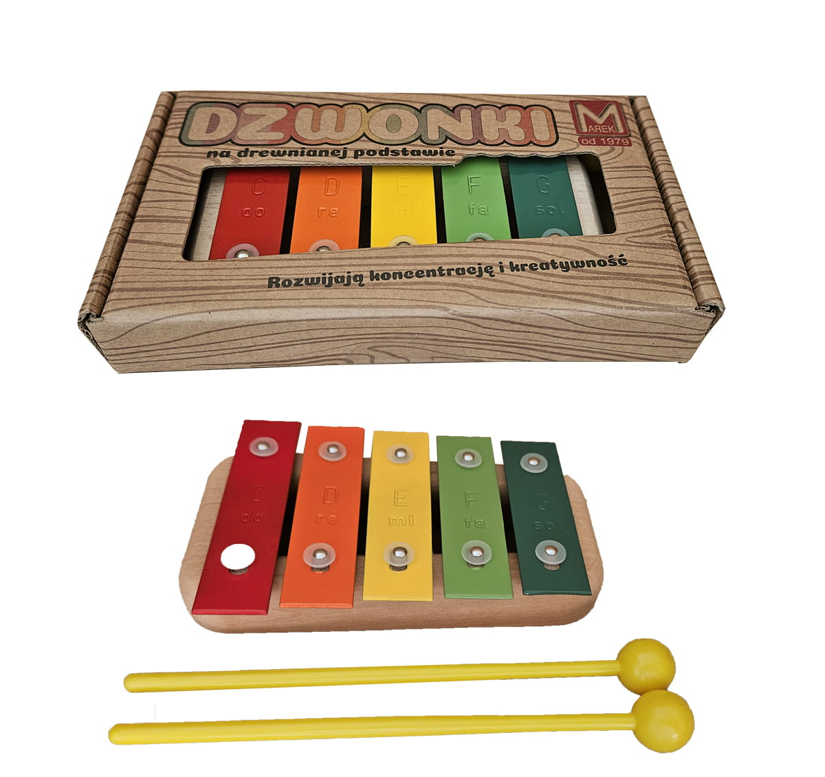 Dzwonki 5-tonowe polskiej firmy MAREK (model M58KD) to jeden z najbardziej podstawowych, a zarazem najsolidniejszych instrumentów perkusyjnych wykorzystywanych w edukacji wczesnoszkolnej i przedszkolnej. W przeciwieństwie do masowo produkowanych zabawek, jest to pełnoprawny instrument dydaktyczny, który trzyma strój i pozwala na poprawne kształtowanie słuchu od najmłodszych lat.