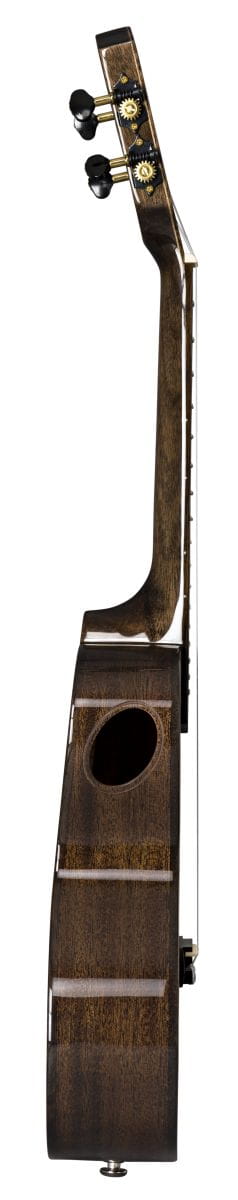 Model KCI-100G-BK wyróżnia się eleganckim wykończeniem see through black, które pozwala zobaczyć strukturę litego drewna pod czarnym lakierem. Zdobienia w formie ptaków i łódki na podstrunnicy dodają instrumentowi artystycznego charakteru, a otwarta główka (slotted headstock) i czarno-brązowe klucze stroikowe podkreślają jego styl premium. To ukulele, które wygląda świetnie zarówno na scenie, jak i w domowym studiu.