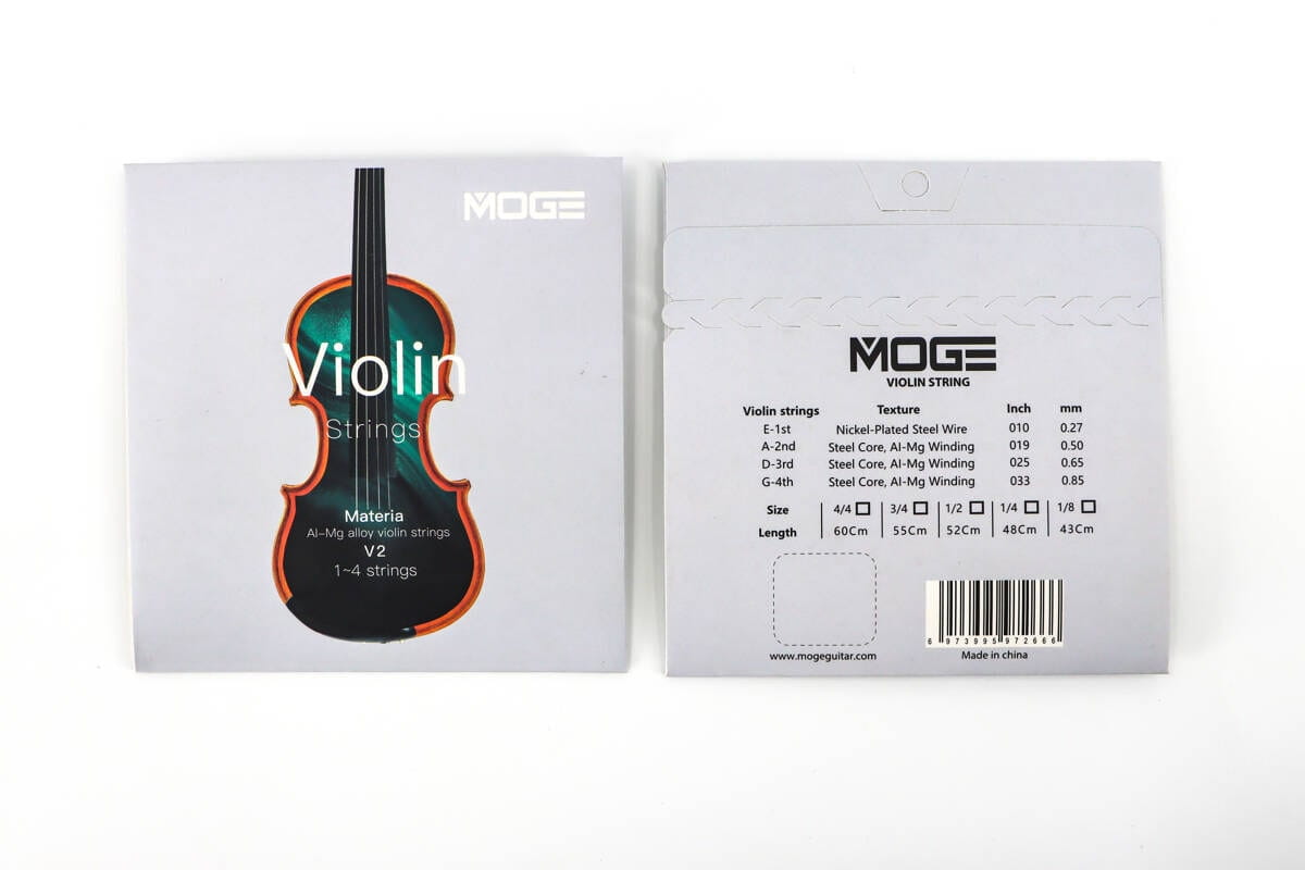 Struny do skrzypiec MOGE V2 dla osób początkujących w rozmiarze 1/2.