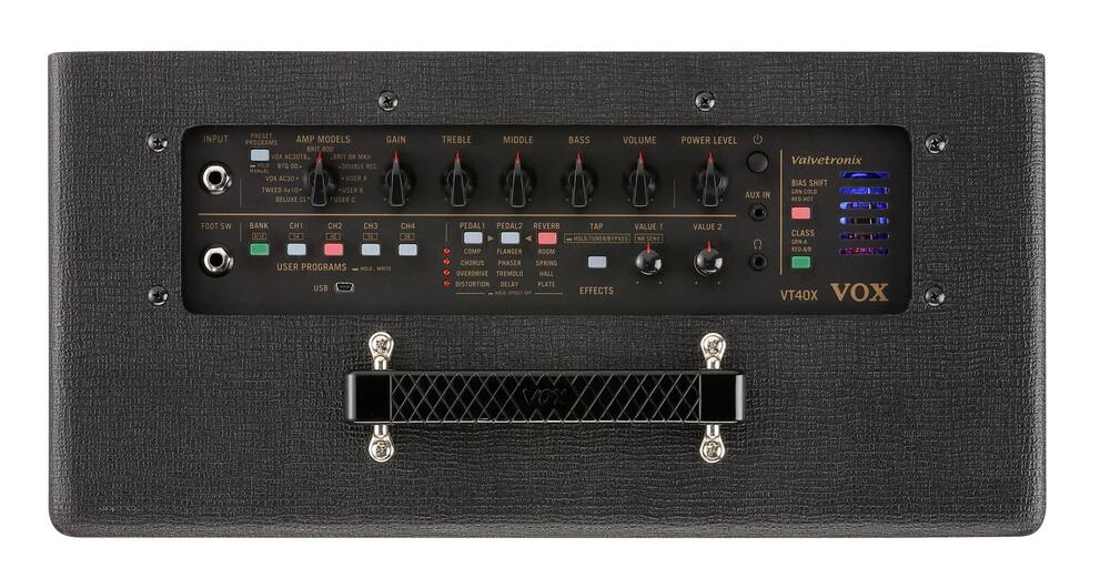 VOX VT40X to idealne rozwiązanie dla gitarzystów, którzy potrzebują jednego, wszechstronnego wzmacniacza – wystarczająco mocnego na próby, a jednocześnie oferującego światowej klasy brzmienie w domu. Model ten łączy autentyczne, analogowe "czucie" lampy z elastycznością cyfrowego modelowania. Dzięki mocy 40W, 10-calowemu głośnikowi i technologii VET, VT40X dostarcza niezwykle realistyczne i dynamiczne brzmienia, które do tej pory były nieosiągalne w tej klasie wzmacniaczy.
